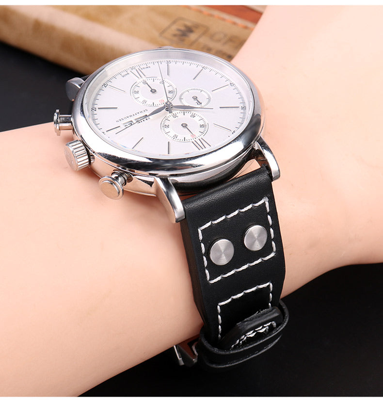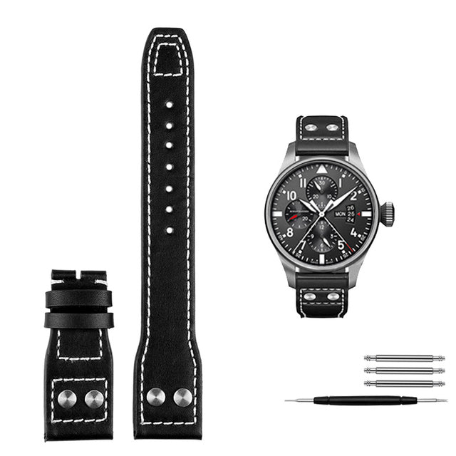 Genuine Leather Rivets Watchband For Big Pilot Watch